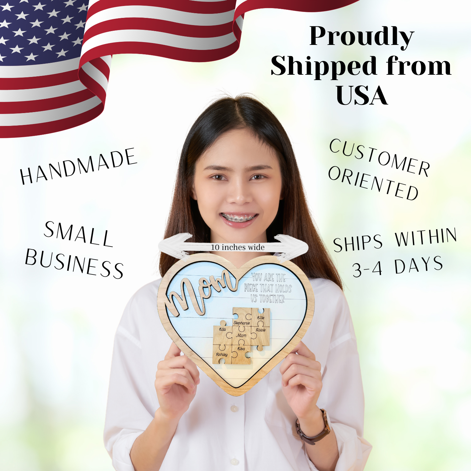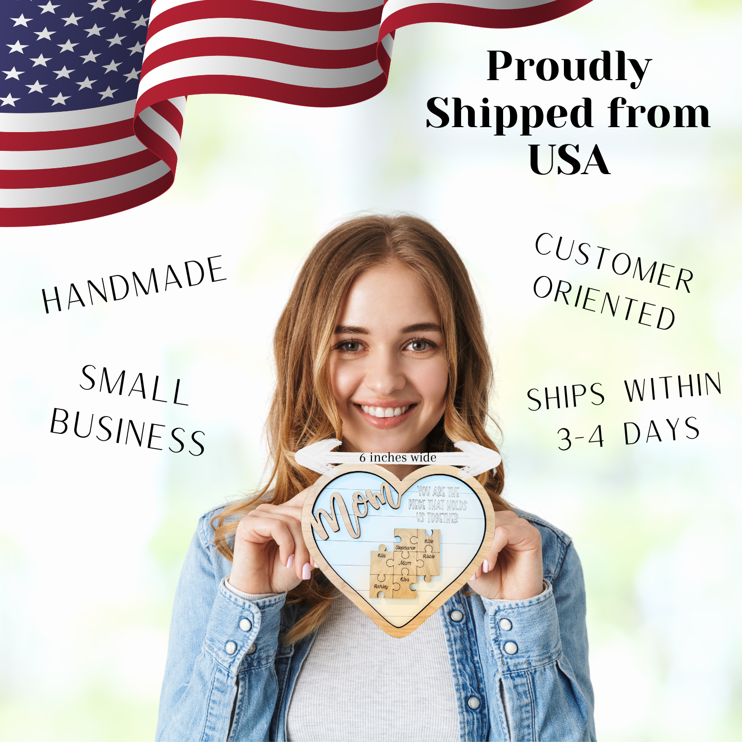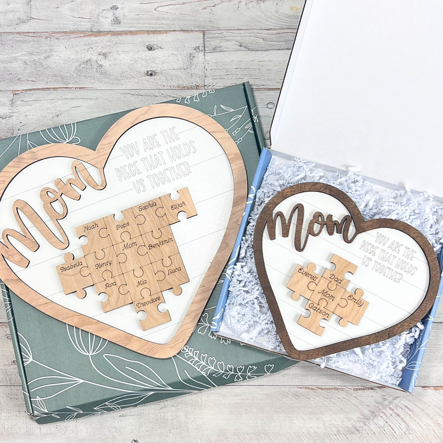 Celebrate Mom in Style: Delivered in elegant packaging, Krafty Supply's, Personalized Mother's Day Heart Puzzle is ready to gift and sure to make Mom feel loved and appreciated. Give her a gift she'll never forget and make this Mother's Day one she'll cherish forever with our heart puzzle.